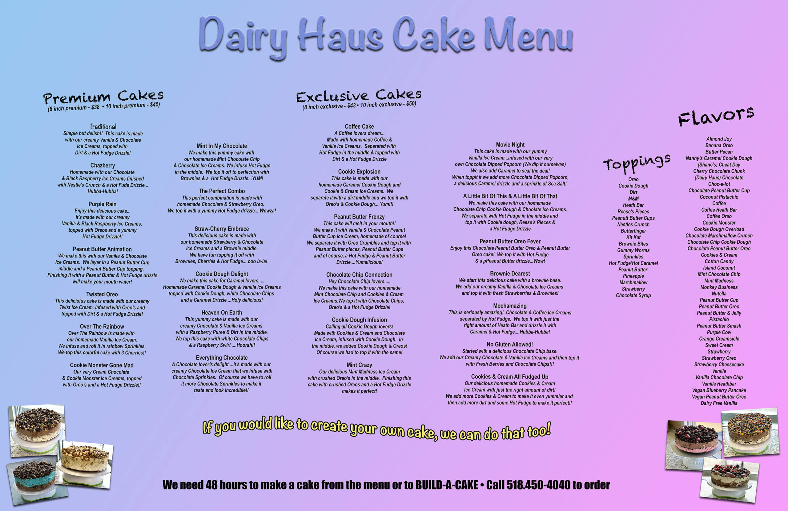 Celebrate with handcrafted ice cream cakes from Dairy Haus in Saratoga, NY. Custom made, fresh ingredients, and unforgettable flavor combinations!