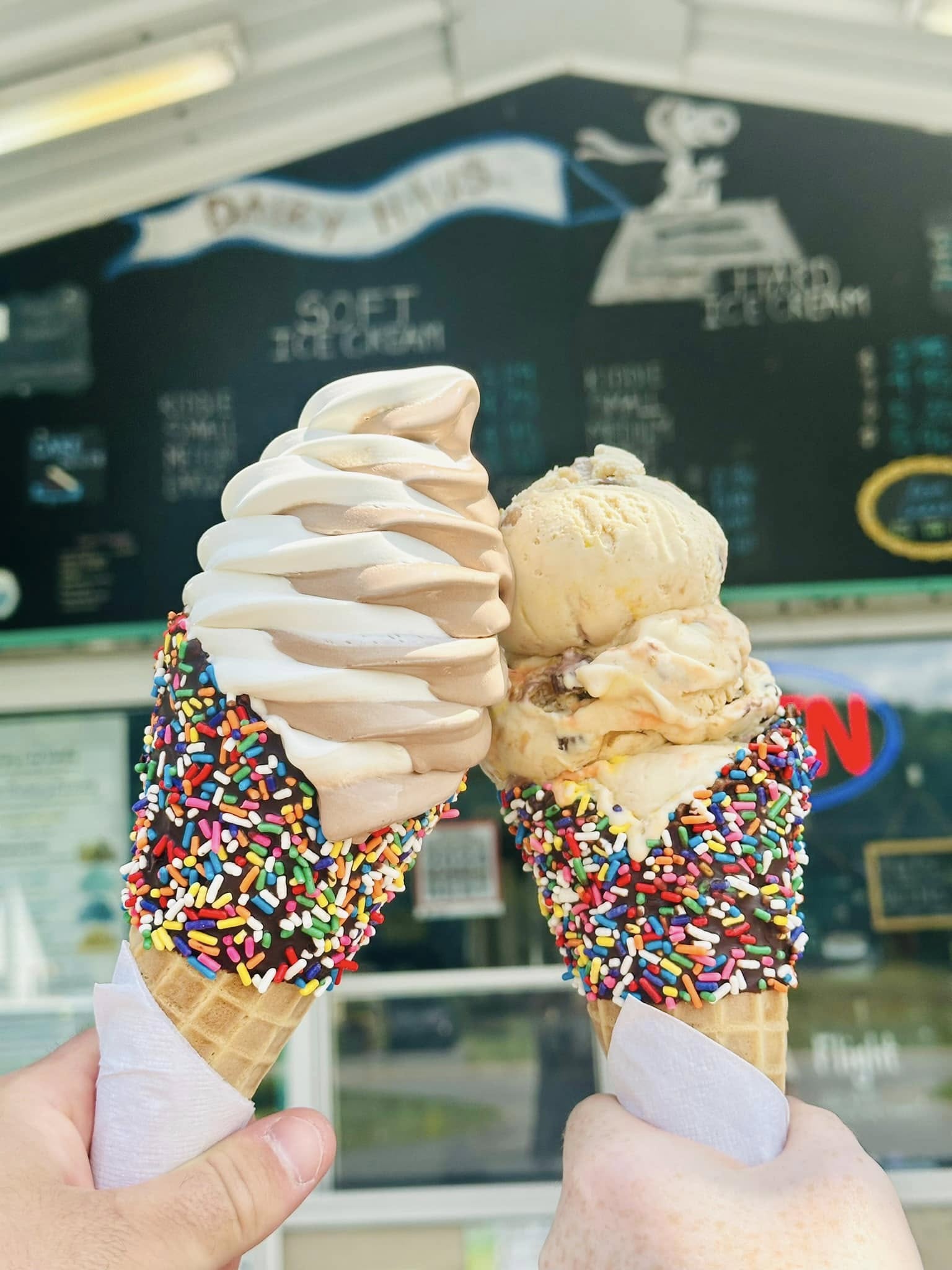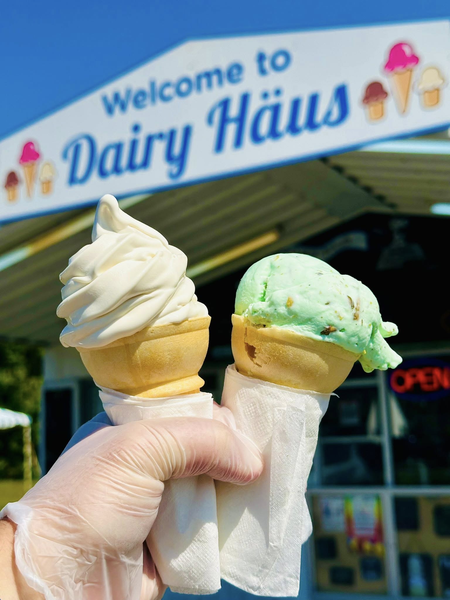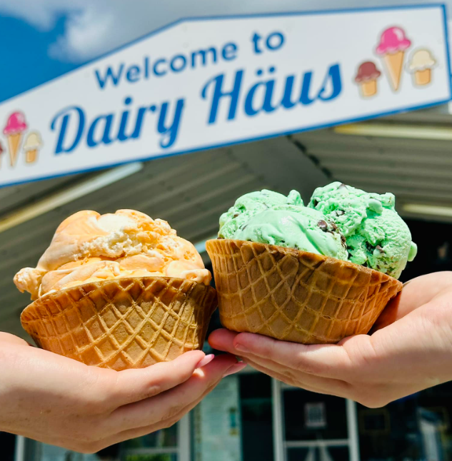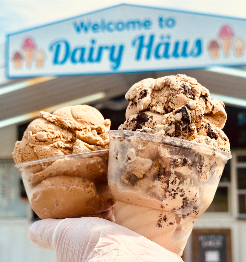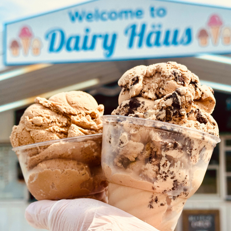 Explore the full Dairy Haus ice cream menu, featuring  soft serve ice cream, hard ice cream, and delicious pie and cake options. Choose from dozens of flavors, sundaes, shakes, floats and specialty desserts – all made to satisfy every sweet tooth.